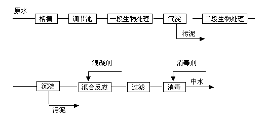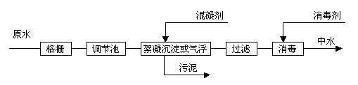 注:當城市污水回用處理廠來水達到中水水質標準時,建筑小區可直接連接中水管道使用。