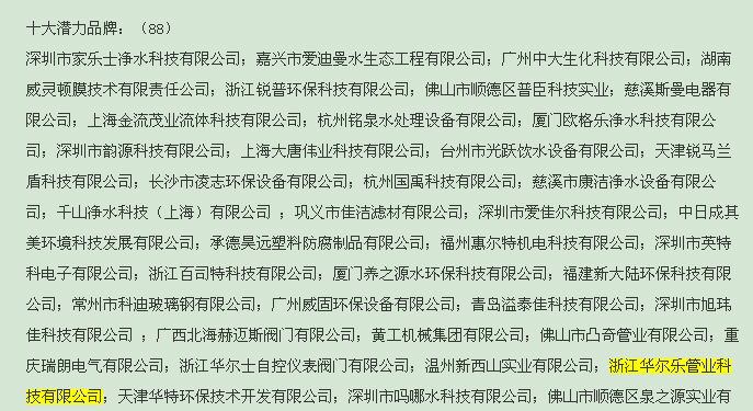浙江華爾樂管業科技有限公司被評為“十大潛力品牌”